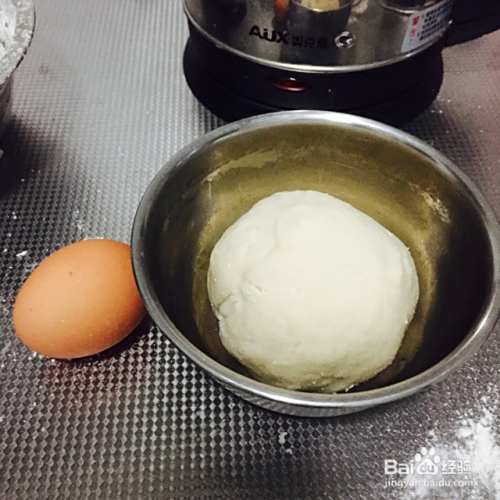 面+热水 揉起来 (用鸡蛋君做个参照啦~)具体水面加多少就自己掌握啦~按我姥姥说的~和面的最高标准是三光~盆光面光手光~这个要慢慢试慢慢体会啦~和好以后扣上盖子就做下一步吧