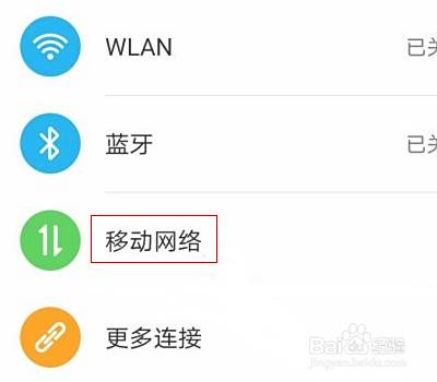 在设置界面,点击移动网络进入。