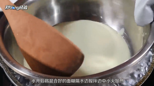 起锅烧水,水开后将混合好的面糊隔水边搅拌边中小火加热。