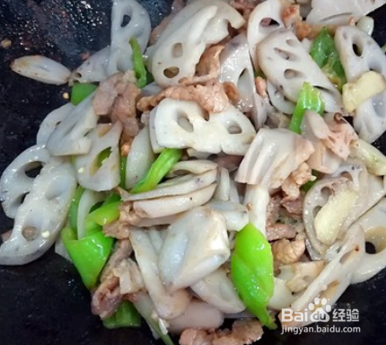 把炒好的藕片再倒进锅里,加盐和酱油炒一分钟左右,让它入味。
