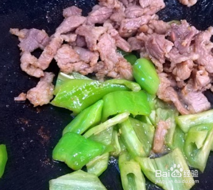 再加入刚刚切好的青椒,快速翻炒一分钟左右至青椒成熟。