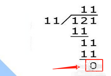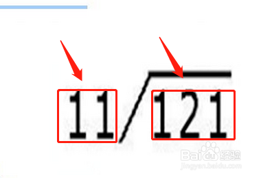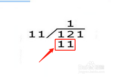 接着我们需要把被除数写在除号的里面,除数写在除号的左面,已知121是被除数,11是除数。
