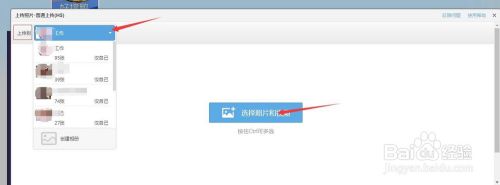 在新弹出来的对话框的左上角有一个“上传到”,点击旁边的小三角箭头可以选择将图片上传到哪个相册中,可以自己新建一个相册,然后点击“选择图片和视频”