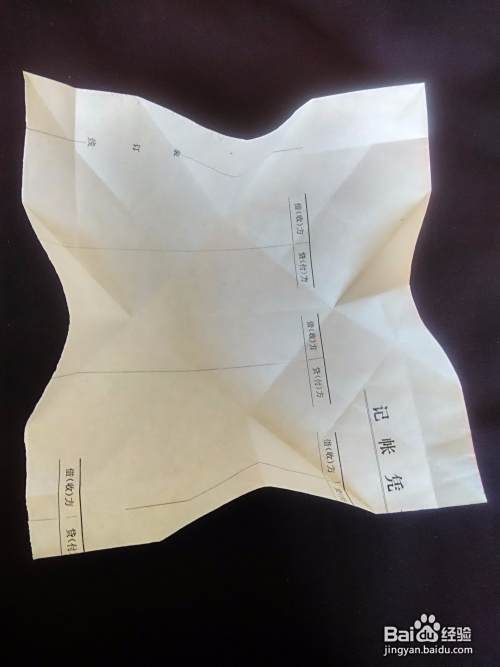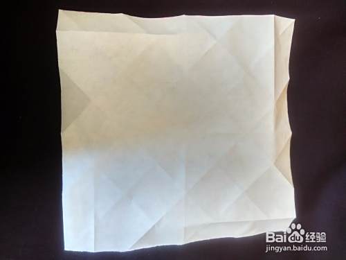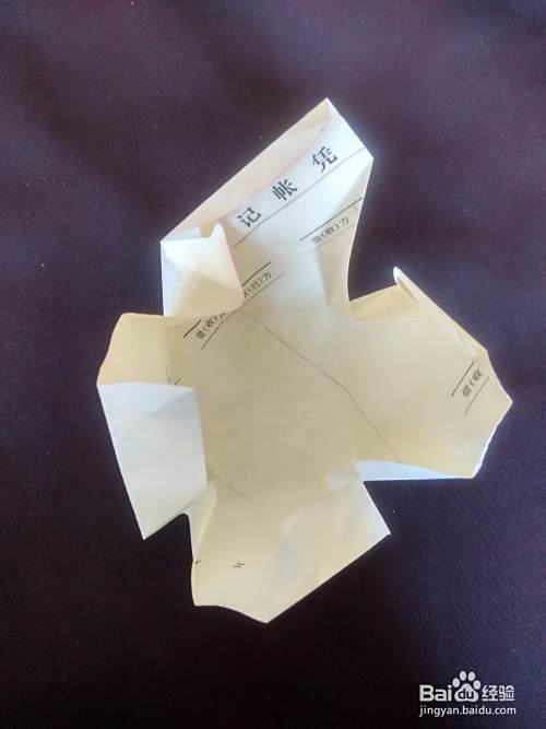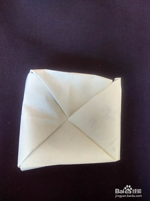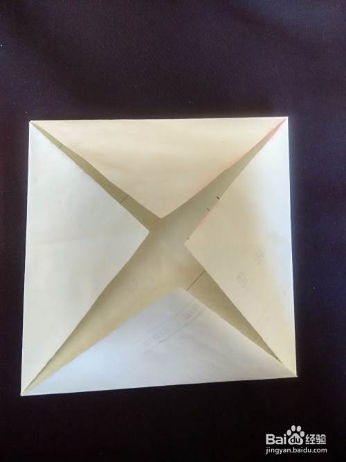 然后,四边往中心合。折出四个面。然后,长方形往下压,成四个梯形的边。上面的四个梯形,一个压一个,最后一个梯形压过第三个梯形,然后,插入第一个梯形下面。好了!礼品盒子折好了!