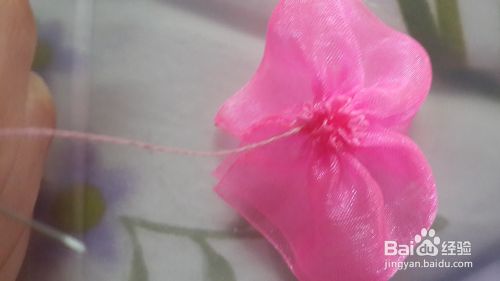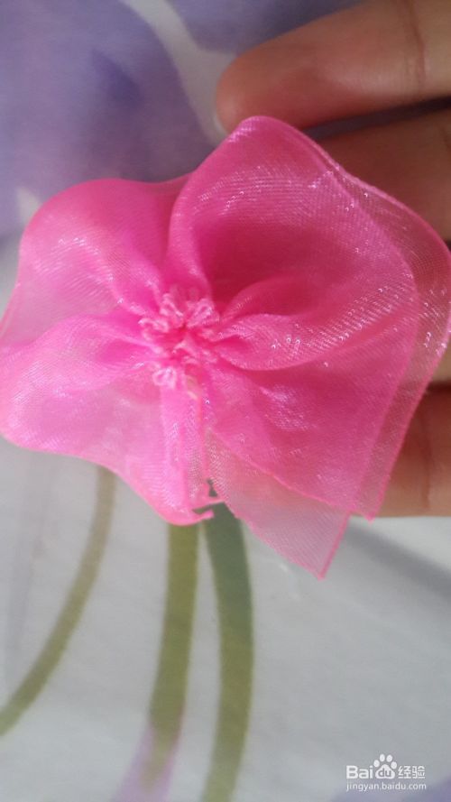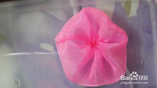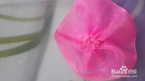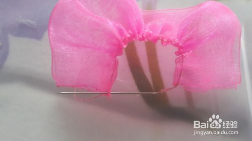 最后如下下图所示把它粘在橡皮筋上,一个漂亮纱花橡皮筋就制作完成了。