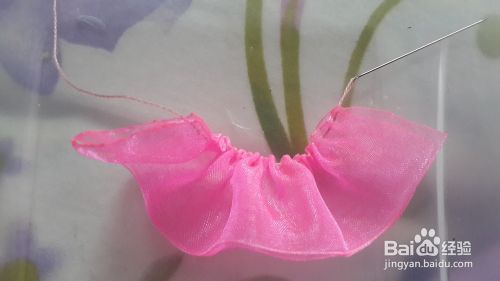 把2块纱放在一起,用针穿过一边。
