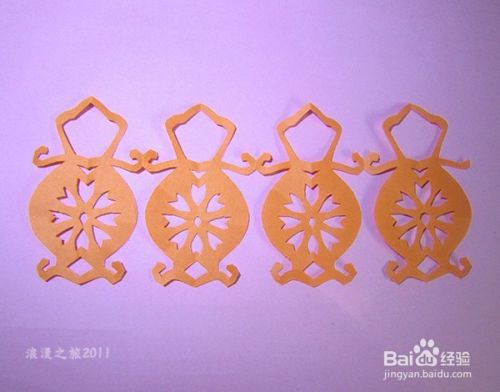 打开,一幅四联花篮的剪纸作品就完成了,如图所示。
