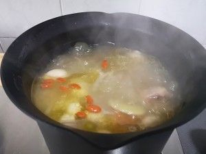 半小时后,已经是可见的白汤了,这时候我加了一片陈皮