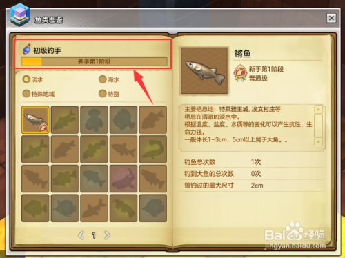 如果你的钓鱼等级过低或达不到标准,那么就会出现下图所示,玩家可以在钓鱼图鉴中,从新手钓鱼开始。