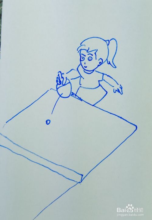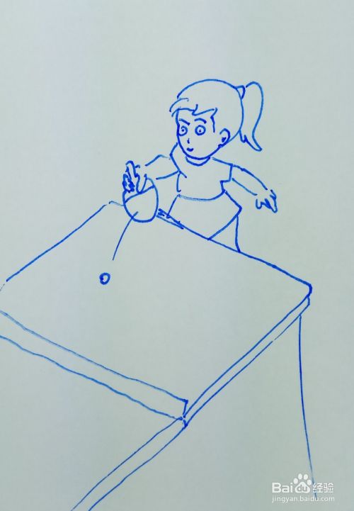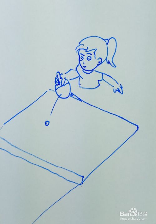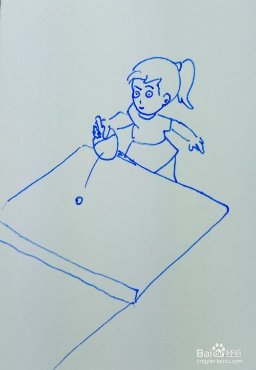 然后再用线条画出乒乓球的案板,并画出乒乓球。