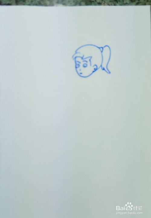在白纸上用线条和曲线画出一个小女孩的头部轮廓,并画出她的五官和头发。