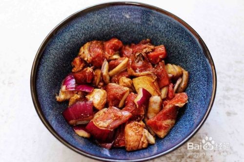 把切好的牛肉放入碗里,加入切好的洋葱加入料酒去除牛肉的腥味。