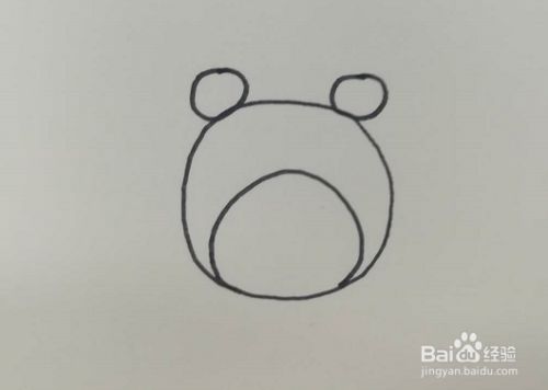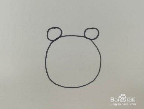 第二步,在刚刚画好的大圆圈的外面,画上两个小圆圈,一边一个,可以看下图。