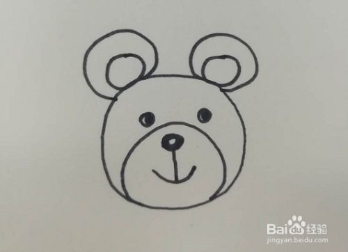 最后,就是给小熊画上嘴巴,在鼻子的下面画一条直线,然后再画上一个微微笑的嘴,小熊就画好了,效果图如下。