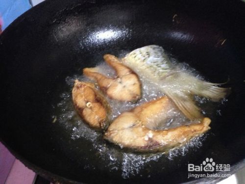 锅内加适量油烧至7成热,取出鱼用厨房纸擦干表面,下入鱼块炸成金黄色捞出备用