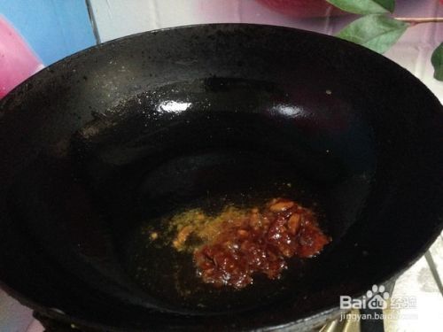 锅内留底油,下入郫县豆瓣酱、黄豆酱炒出红油