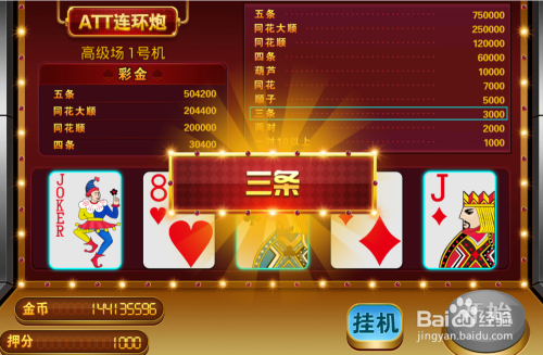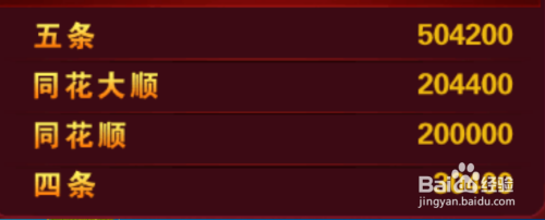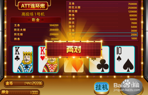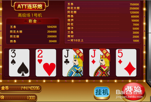 每次游戏进行两轮,第一轮结束后可根据牌型进行选择是否保留(自动游戏会自动保留)特殊牌型,鬼可以替换任何数。保留的牌可进入下一轮,两轮结束后进行结算。如有对应的彩金的牌型即可获相应奖励。