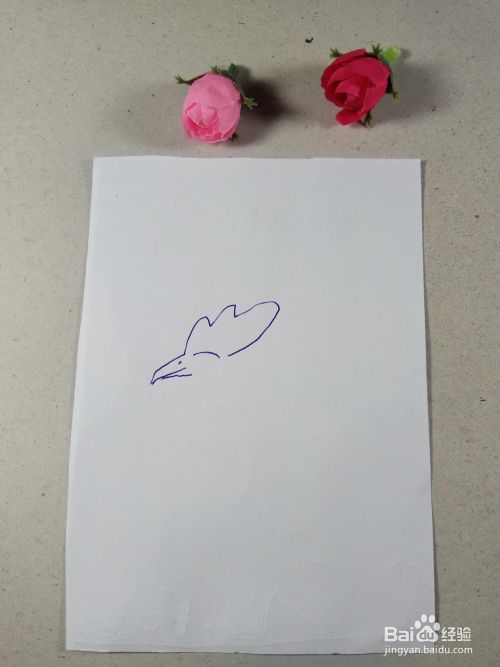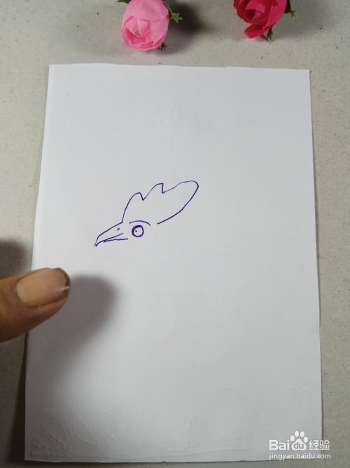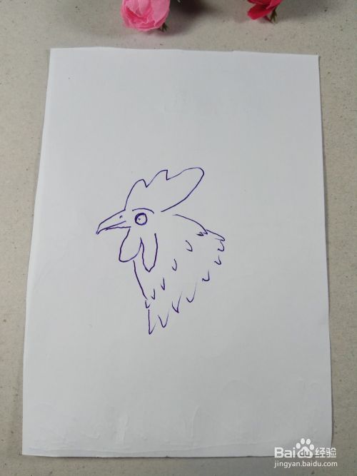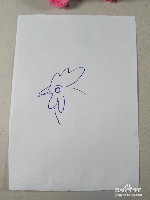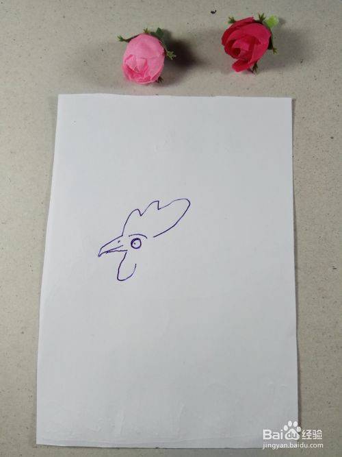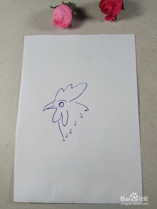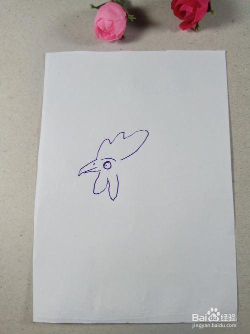 在纸上画出公鸡的嘴巴和鼻子,公鸡的嘴巴比母鸡的嘴巴更锋利一些。