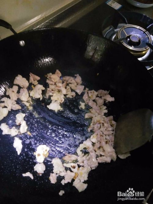 3、将肉片进行煸炒,注意时间,微熟就可以出锅