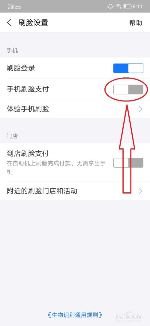 在刷脸设置中点击关闭“手机刷脸支付”选项的开关,即可。