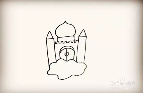 在顶部画出仙桃状的城堡顶。