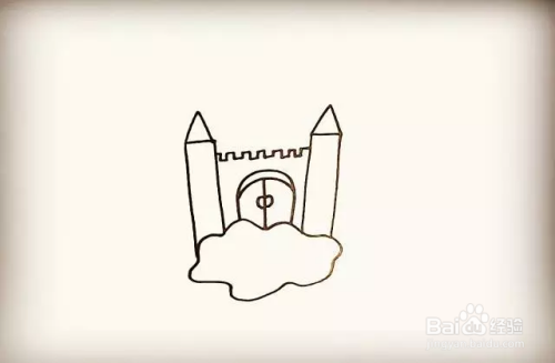 在云朵上画出一扇拱形的小门。
