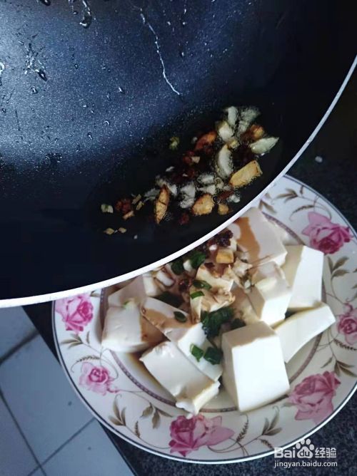 蒜切成碎沫;蒜沫爆油浇上豆腐即可(或把蒜沫先放到豆腐上方,油热泼上);
