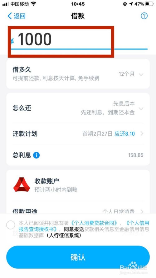 我们按照自己需要进行申请,最高不超过系统最高额度,点击“去借钱”,需要借钱金额