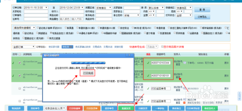 勾选要打印的订单,可以单选也可全选,点击打印快递单,确认选择的打印机之后,点击直接打印