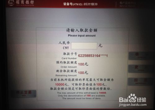 输入取款金额。这里可以小于第一步设置的取款金额,比如 设定取款1000元,可以实际只取款100元。