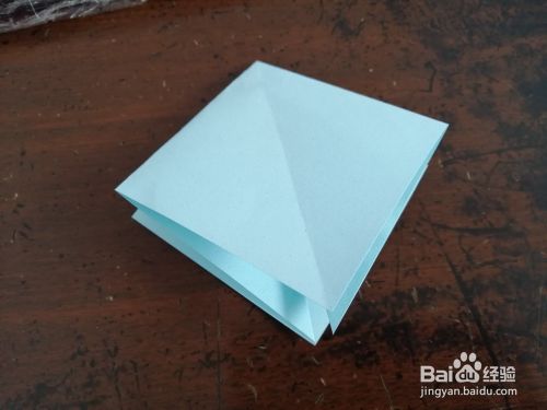 先把彩纸的两角对折,翻到背面,再把两边对折。
