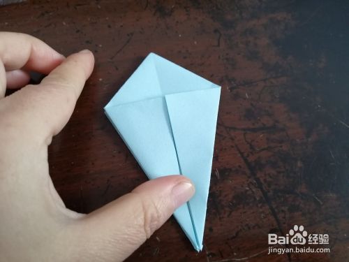 把上边的尖角向下折,如图一。再把下面的放平就完成了。
