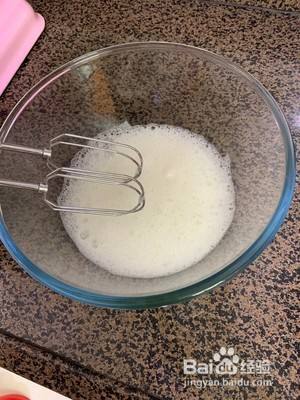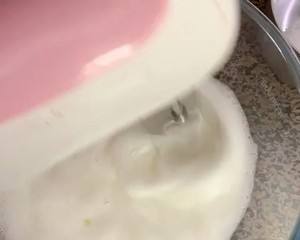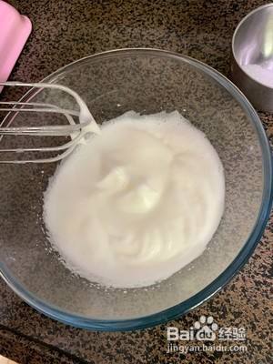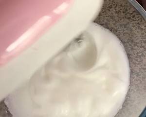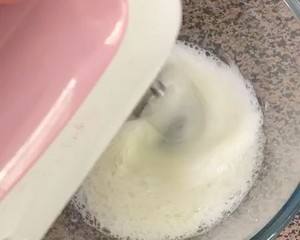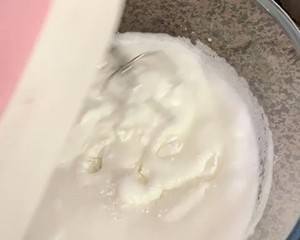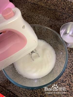 最后加入玉米淀粉跟剩下百砂糖,用勾头稍微搅拌,防止粉末飞起,继续打
