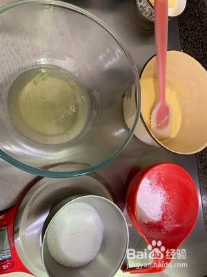 准备好材料,将玉米油,蛋黄,纯牛奶搅拌均匀,加入过筛的低粉搅拌均匀