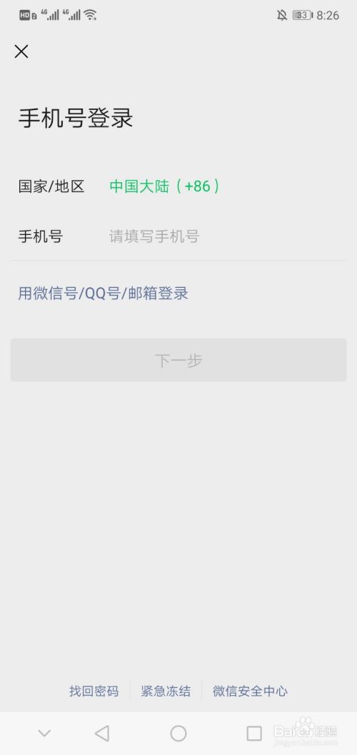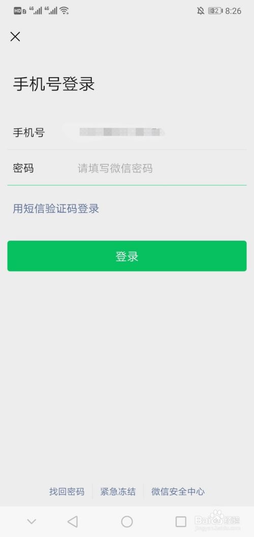 输入帐号和密码,登录微信帐号。