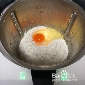 加入高筋面粉,一个鸡蛋,设定30秒钟/速度由1至3渐速提高揉成面团