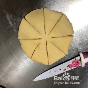 花型:擀成薄片,对称切8刀(中间留空)