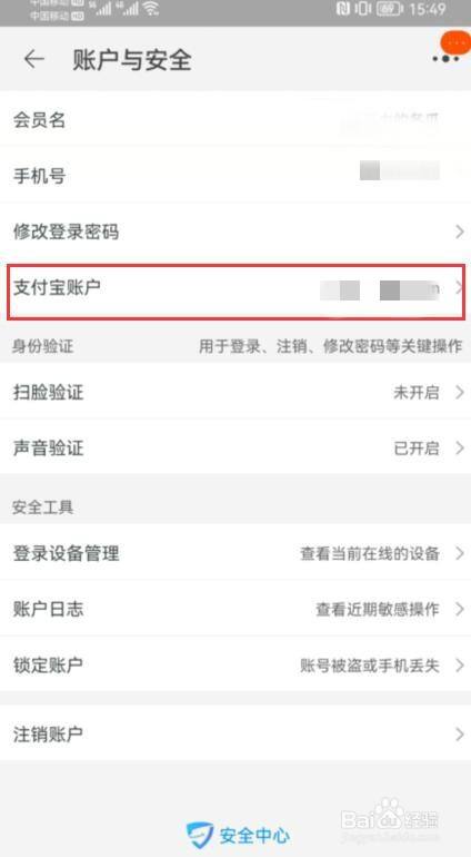 点击支付宝账户。