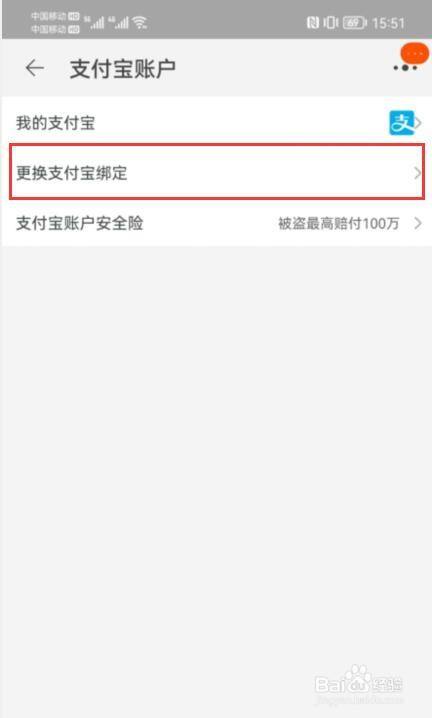 进入支付宝账户,点击更换支付宝绑定。