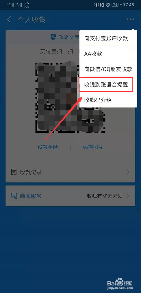 点击【更多】按钮后,选中下面的【收钱到账语音提醒】选项,进入到详细页面