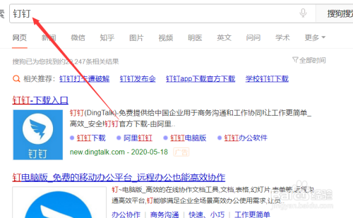 我们先打开电脑,打开浏览器,搜索输入“钉钉”