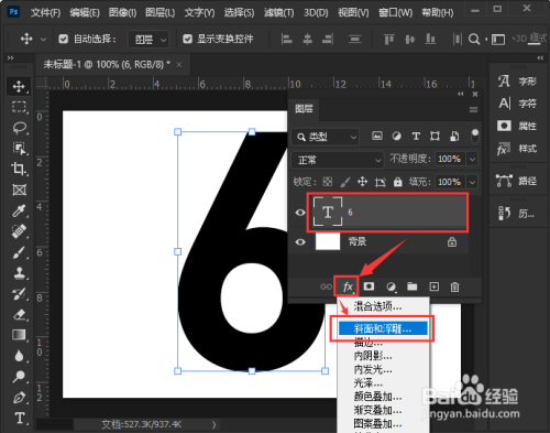 接着,我们选中数字6的文字图层,然后点击【fx】-【斜面和浮雕】。
