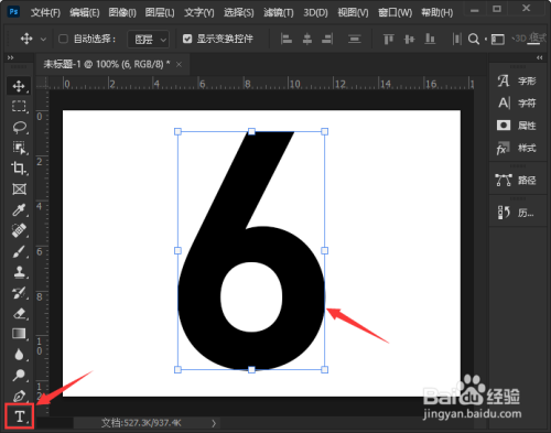 我们用【文字工具】输入需要的文字,比如:数字6。