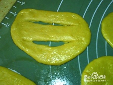 用刀在面团上划两道刀口。