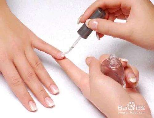 涂抹底油:涂抹底油能够使甲油的颜色更加持久、亮丽,还能够保护指甲。 做法:由指甲底部涂抹到指甲尖,越靠近指甲尖越用大一点的力气即可。