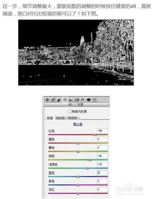 5、这一步,细节调整最大,蒙版指数的调整的时候按住键盘的Alt,观察画面,黑白对比比较强烈就可以了,如下图。