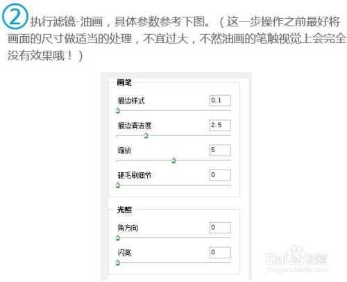 2、执行:滤镜 > 油画(没有这款滤镜的需要去网上下载),具体参数参考下图。