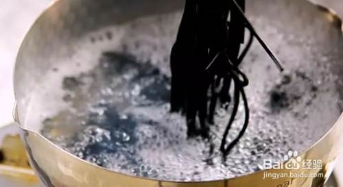 沸水下墨鱼汁面,煮8分钟