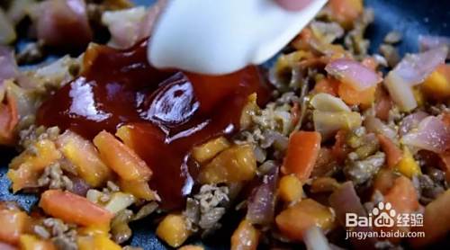 倒入番茄酱翻炒均匀