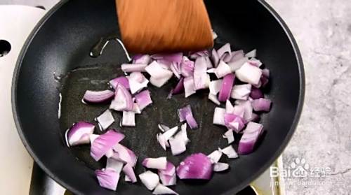 洋葱碎下油锅炒香